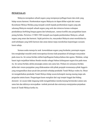 Pengajian malaysia wednesday 15 october 2014. Pengajaran utama yang harus dipelajari oleh kaum bukan Melayu ialah peristiwa rusuhan 13 Mei 1960 kerana mencabar kedudukan orang Melayu seperti yang termaktub dalam Perlembagaan Malaysia. Perlembangan malaysia merupakan satu bentuk peringatan undang-undang untuk semua demi menjamin kesejahteraan dan keselamatn semua selain ituia juga merupakan satu dokumen undang-undang asas yang menerangkan dan memperuntukkan.